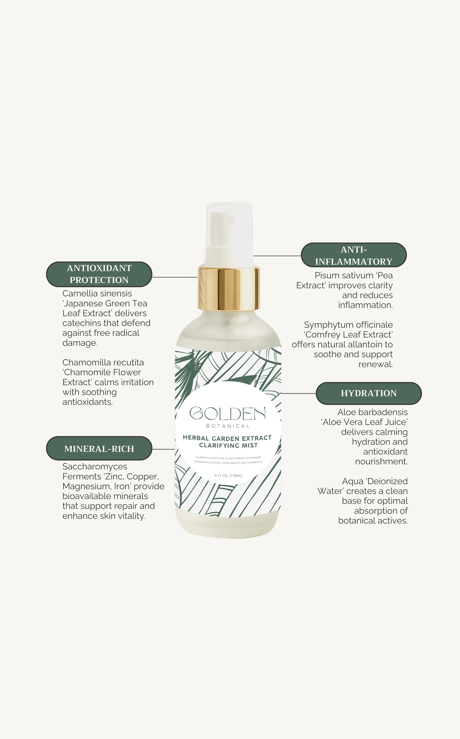 Herbal Garden Extract Clarifying Mist + Allantoin, Catechins, & Saccharomyces Ferment.